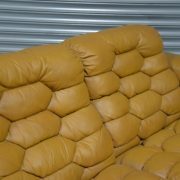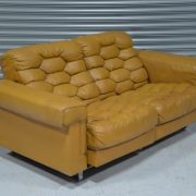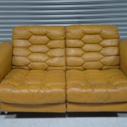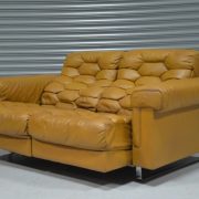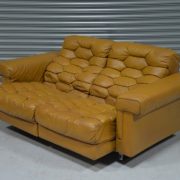 The DS-P was designed by Robert Haussmann for De Sede in 1971 and produced between 1971 and 1979. It is one of the most iconic models of its time. DS-P captured the market for luxurious aesthetic and comfort with its honeycomb stitching, down filling and reclining mechanism extending the seating area by 15cm. De Sede uses the highest-quality leather, strong, firm and durable, yet soft and pleasant with its pattern of pores, grain, surface structure and folds.