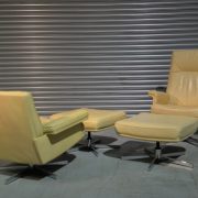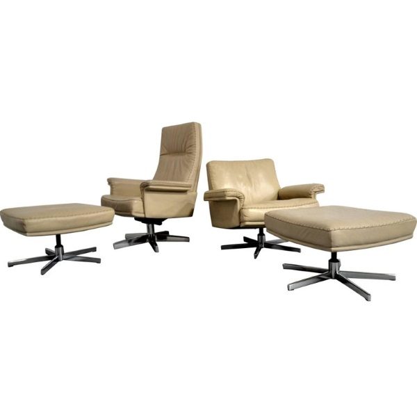 De Sede DS 35 Executive Swivel Leather Armchairs & Ottomans, Switzerland 1970`s